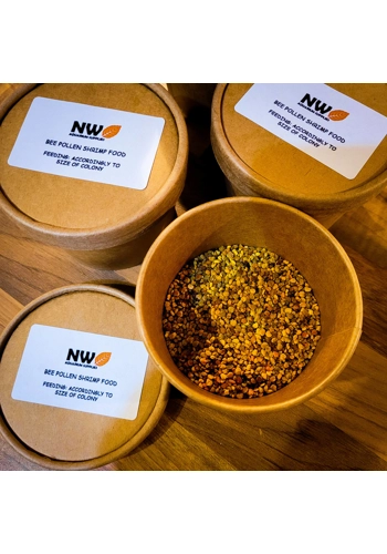 Bee pollen is a great alternative food for shrimp, being it breaks up nicely in the aquarium it can reach the smallest parts of the aquarium where young shrimplets are hiding providing them with a nice boost of nutritian.