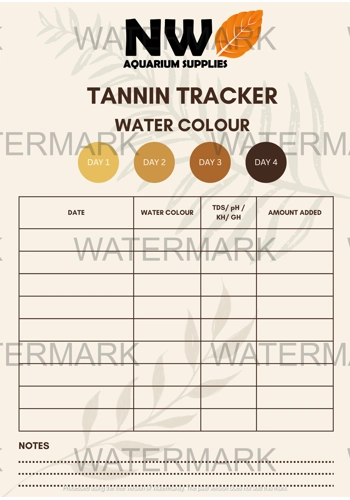 Take control of your blackwater aquarium like never before. The NW Tannin Tracker Sheet is a printable and digital log designed for aquarists who want to monitor how their tank evolves over time with the addition of botanicals. Track changes in water color, log key parameters like TDS, pH, KH, and GH, and document the effects of each botanical you use.
